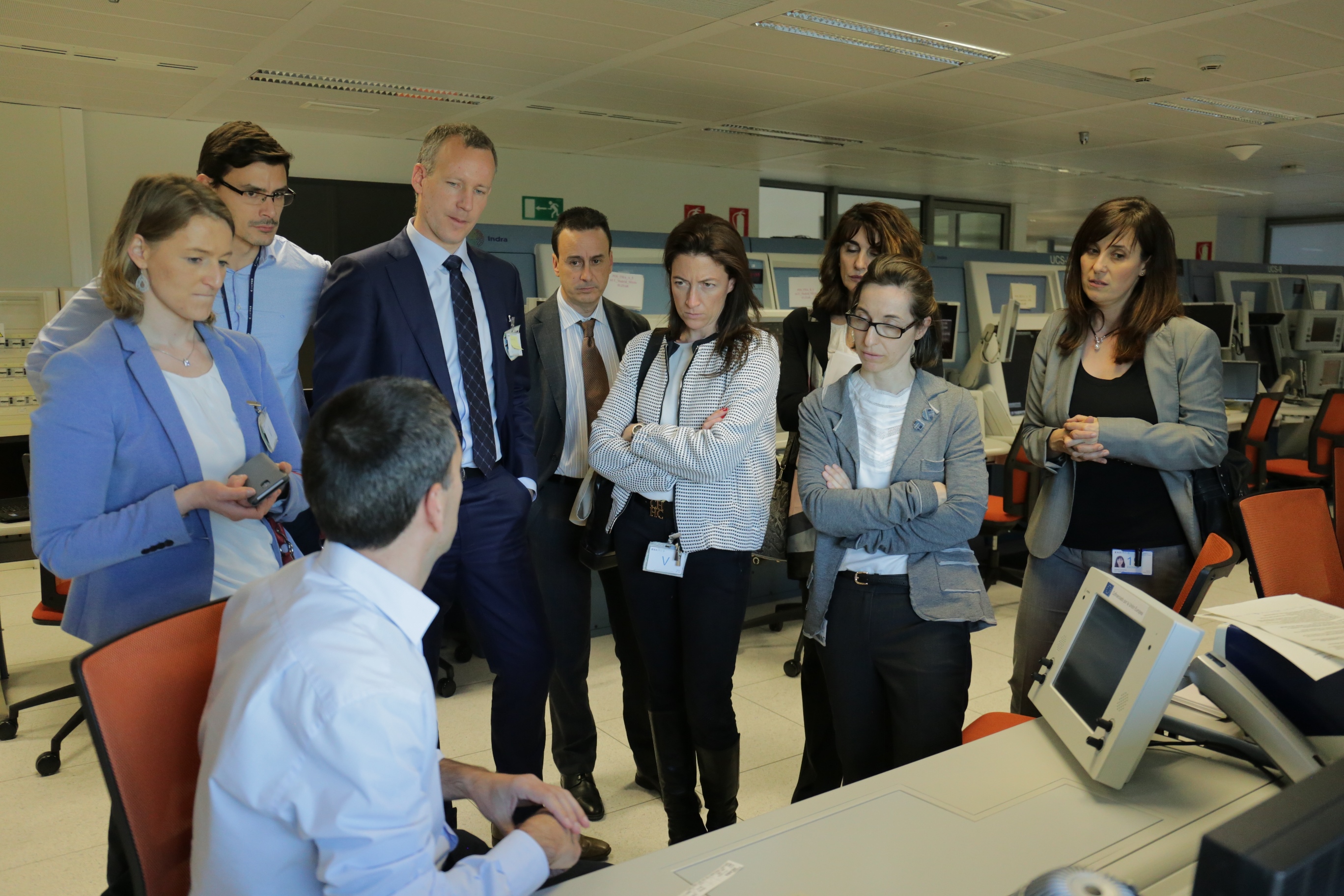 During the visit to Madrid, delegates were guided through the ENAIRE ATM centralised systems, the Madrid Air Traffic Control Centre (ACC) and the Spanish ATM system test platform in ENAIRE headquarters. The visitors had the opportunity to see a live demonstration, one of the multiple applications of the network, the Electronic Flight Strips (EFS), also co-financed by the European Commission in CEF Call 2014 and 2015.