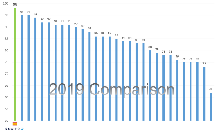 According to the official data provided by AESA, ENAIRE achieved the highest possible rating in all the areas assessed, scoring over 10 points higher than the average of national service providers.