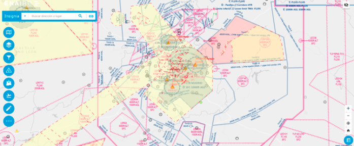 Imagen Insignia de ENAIRE con las restricciones de espacio aéreo activadas