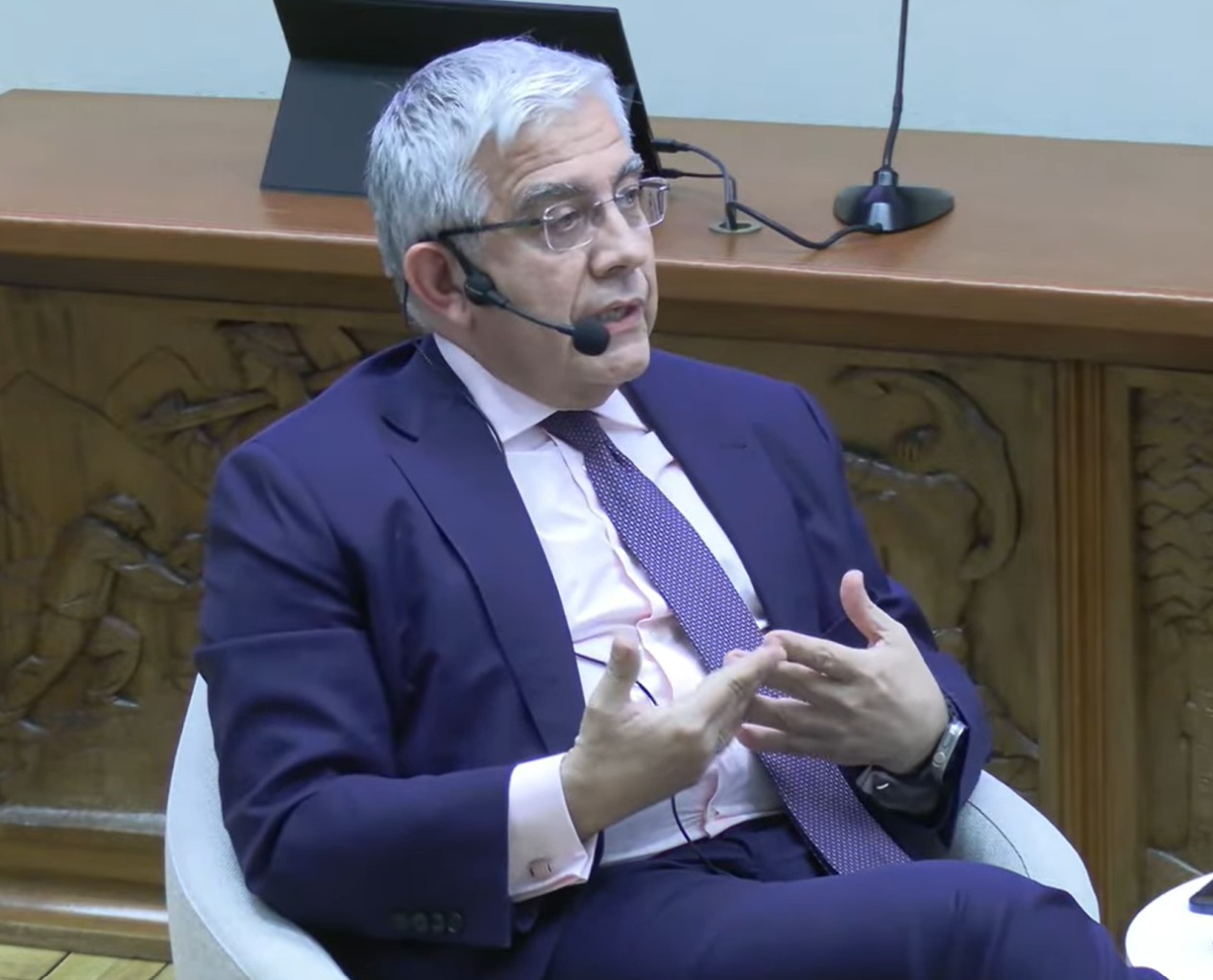 José Luis Meler Jordán, director de Servicios de Navegación Aérea, analiza en el Instituto de la Ingeniería de España el presente y el futuro del aeropuerto de Madrid-Barajas, junto a Sonia Corrochano, directora de Planificación Aeroportuaria de Aena, y José Manuel Hesse, decano del Colegio Oficial de Ingenieros Aeronáuticos de España.