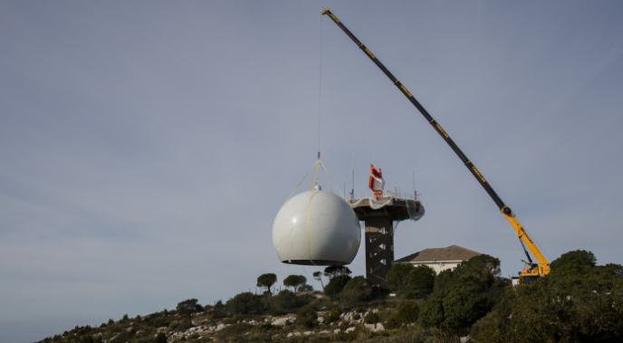 [Colocación del nuevo radomo del radar de ENAIRE en Begas (Barcelona)].